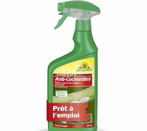 Découvrez le pouvoir de l’Insecticide Spruzit Anti cochenille AF de Neudorff L’Insecticide Spruzit Anti cochenille AF de Neudorff est un produit révolutionnaire pour lutter contre les cochenilles et les pucerons sur vos plantes ornementales et vos fleurs. Avec sa formule spéciale et son action rapide, ce spray prêt à l’emploi